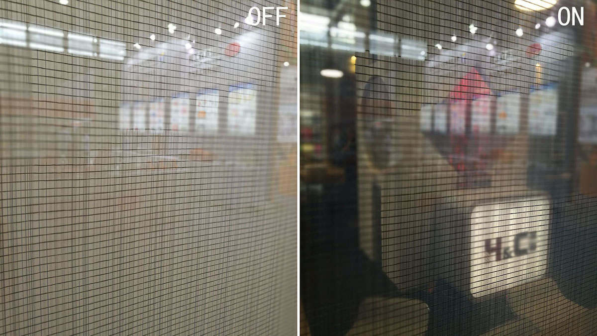 夾絲調(diào)光玻璃:同一位置的兩種效果