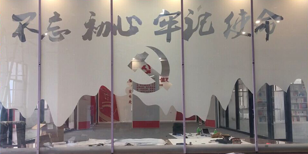 “不忘初心,牢記使命”這是黨的十九大的主題,也是一個(gè)響亮的號(hào)召。做成這樣的隔斷墻,提醒意義非常明顯。